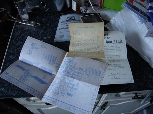 Octus Medal certificate, the original blueprints for the hammer of dawn, Adam Fenix’s will, a letter to Marcus and several photos with messages on the back.
